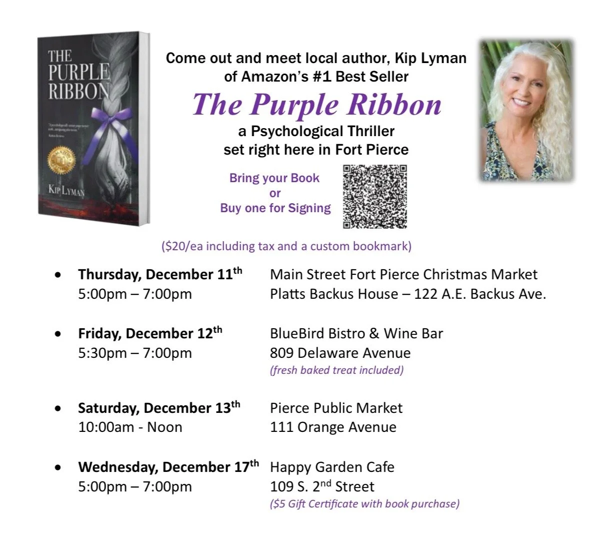 Kip has personally signed copies of her new fiction novel available at Barnes and Noble in Jensen Beach, Florida